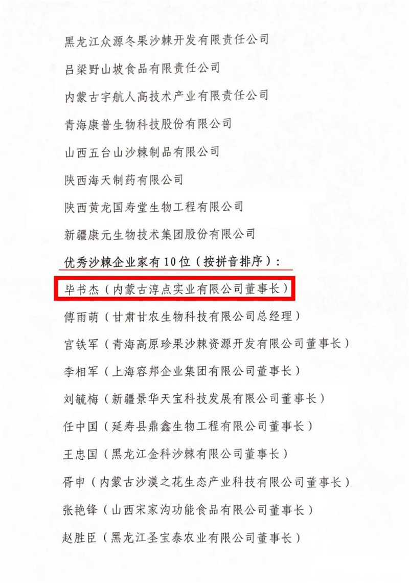 在此次会议上,淳点控股集团董事长毕书杰荣获2020年国际沙棘协会优秀企业家奖励称号。